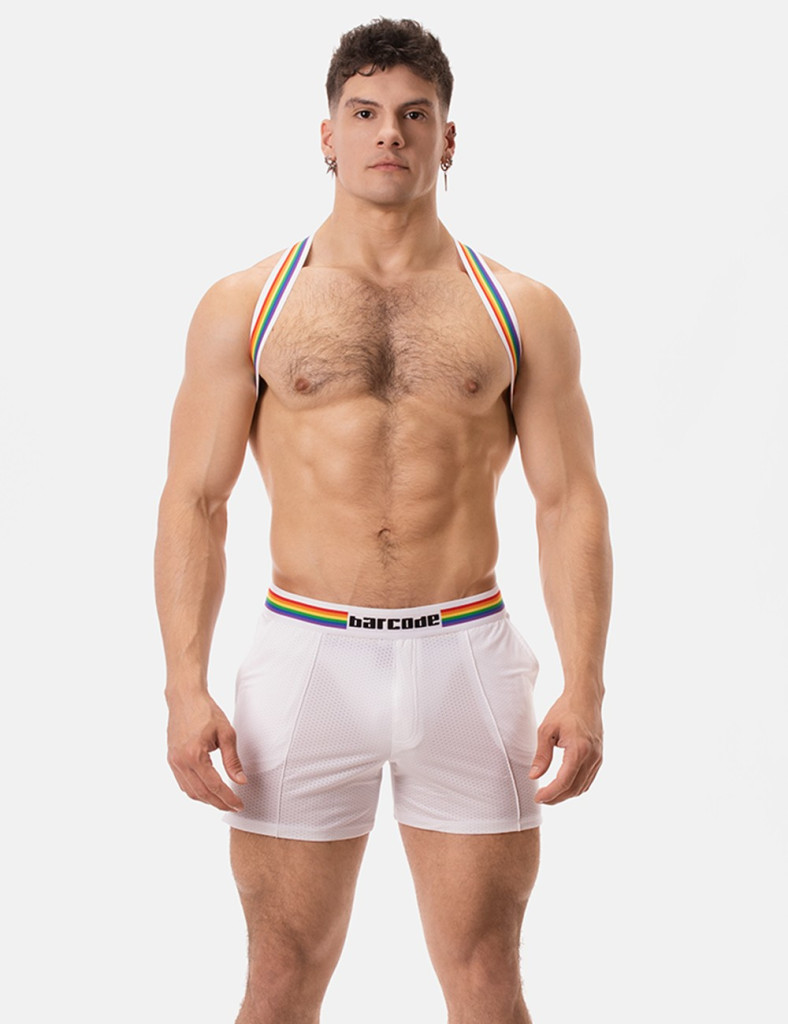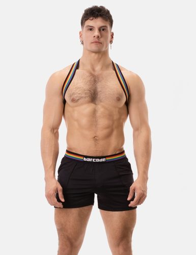 Pantaloncini sportivi con tasche francesi ed elastico arcobaleno.