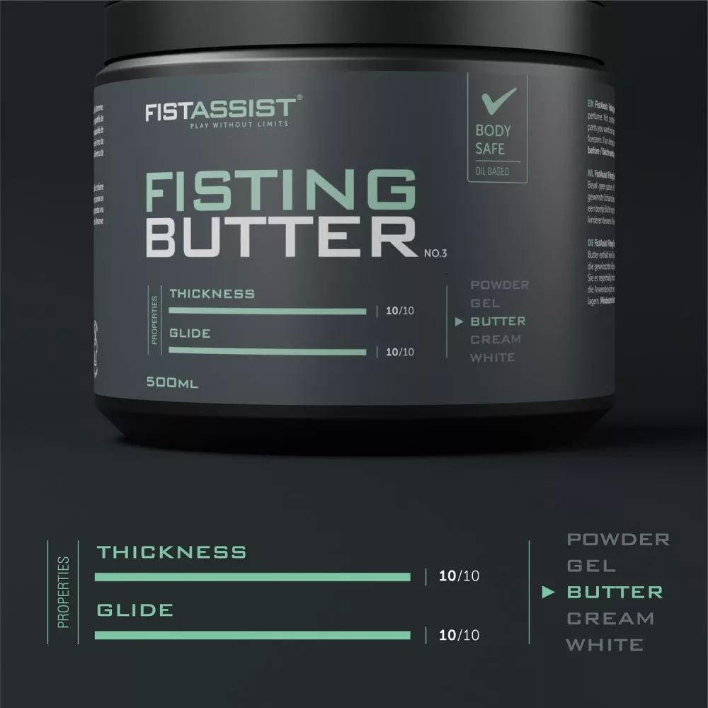 A Fistassist Fisting Butter hidratálja és simítja a bőrt, hogy fokozza az érzéki élményt. Nem tartalmaz parfümöt. Latex óvszerrel nem használható. Használati utasítás: vigyen fel annyit a termékből, amennyit csak szeretne a kívánt testrészekre, és ismételje meg annyiszor, amennyiszer csak szeretné. Mielőtt rendszeresen használná a terméket, vigyen fel egy kis mennyiséget az alkarjára. Ha allergiás reakció lép fel, hagyja abba a használatát. Gyermekektől elzárva tartandó. Hűvös, sötét helyen tárolandó.