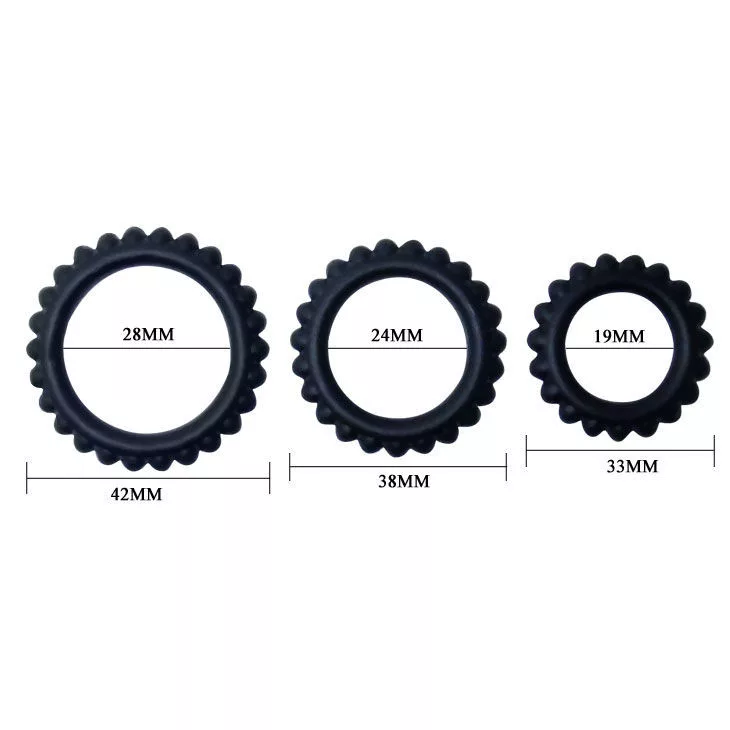 BAILE - TITAN KÉSZLET 3PCS COCK RING BLACK 2,8 + 2,4 + 1,9 CM