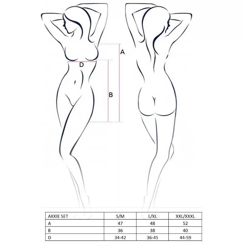 Az Akkie kollekció készlete egy fantasztikus fehérnemű készlet, látványosan szexi dizájnnal, amellyel a csábító bombává válhatsz, a rangos szexi fehérnemű márka Passion