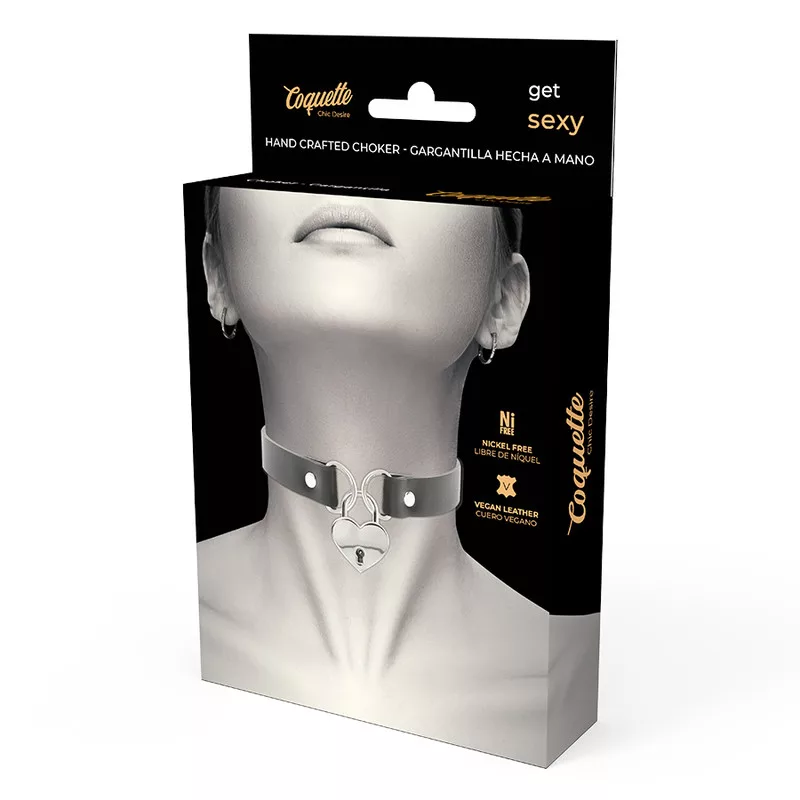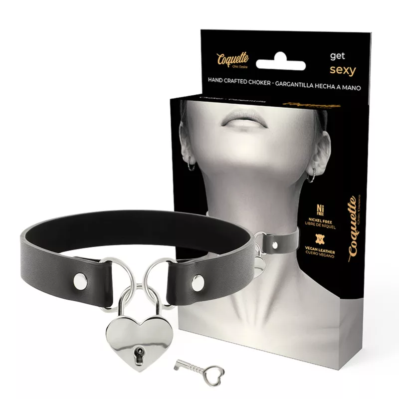COQUETTE CHIC DESIRE – VEGÁN BŐRNYAKLÁNC SZÍV KIEGÉSZÍTŐVEL ÉS KULCSCAL