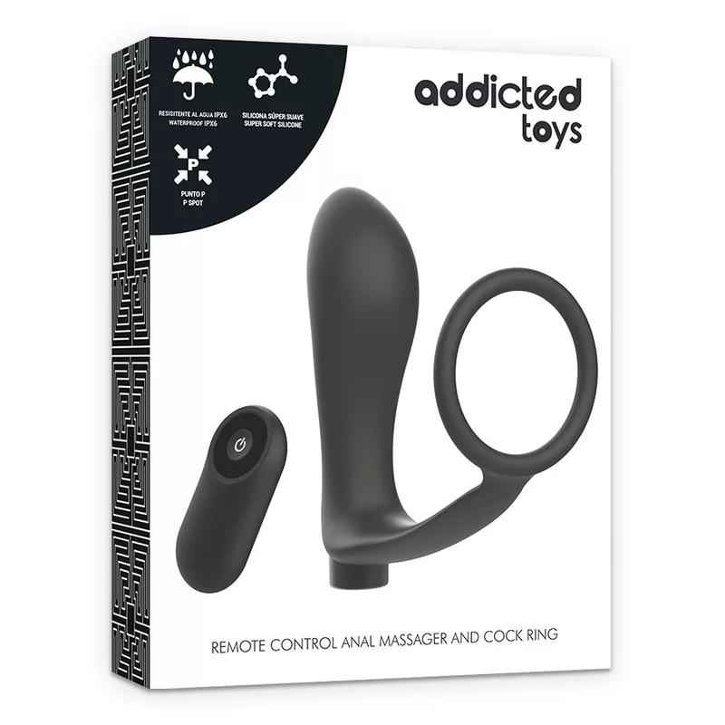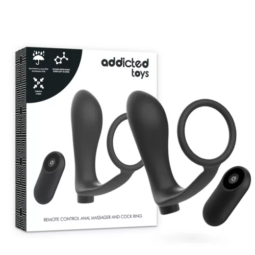 ADDICTED TOYS - PÉNISZGYŰRŰ TÁVIRÁNYÍTÓS ANÁLIS DUGÓVAL, FEKETE ÚJRATÖLTHETŐ