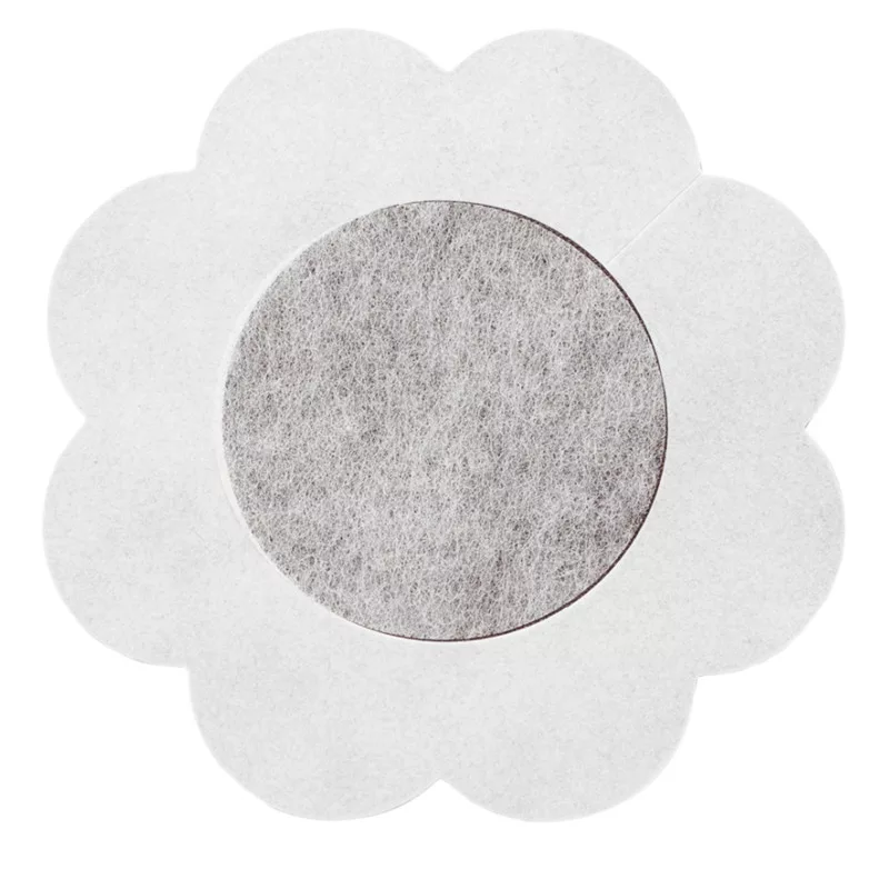 A fedelek egy oldalról egyre. Ügyelj rá, hogy a mellbimbó a mellbimbó védő közepén van. Finoman nyomd meg a mellbimbóvédőt a bőrön, hogy elérd a