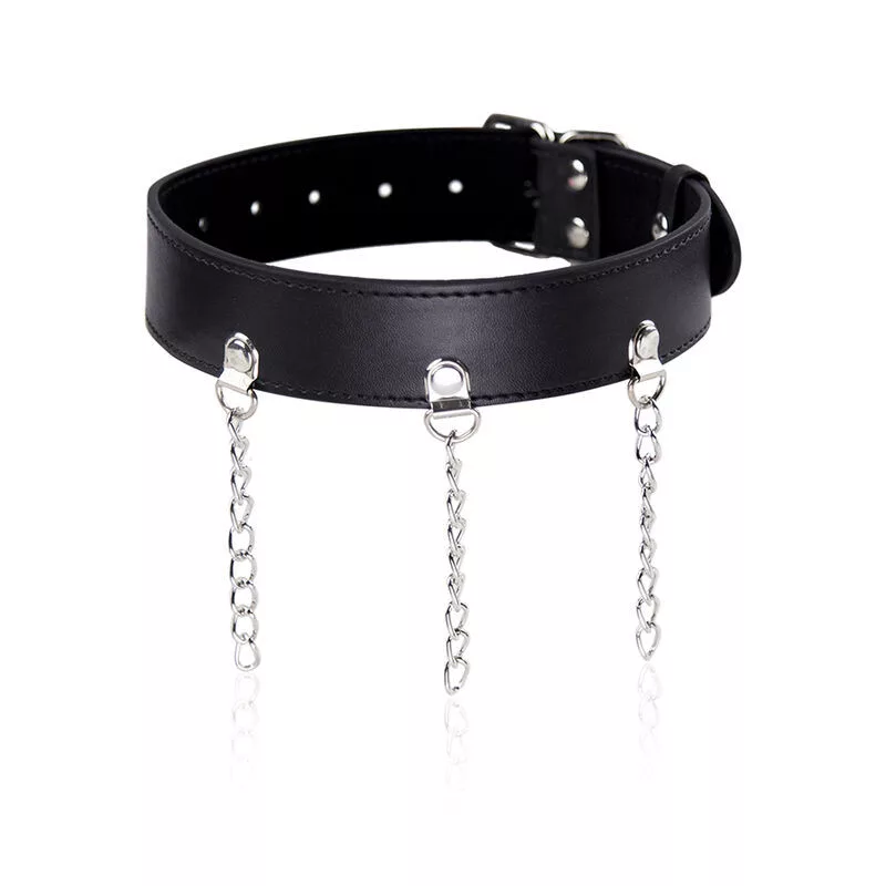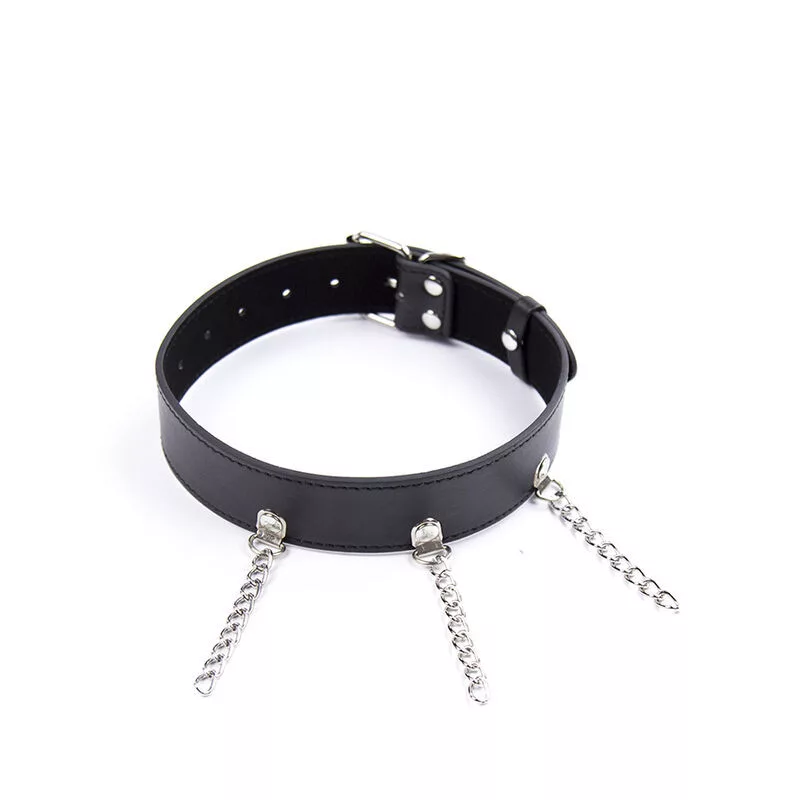 • : Utánzatos bőrnyaklánc gyűrűkkel,