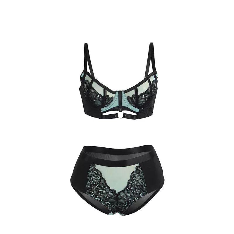 SUBBLIME - 955557 ZÖLD LAKTOS BŐR HÁLÓS CIPZÁROS MELLTARTÓ SZETT S/M