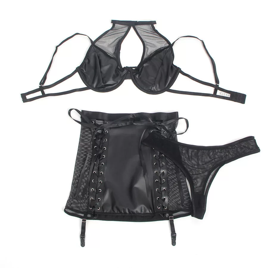 SUBBLIME - 957599 BŐR MELLTARTÓ ÉS SZOKNYÁS SZETT FEKETE L/XL