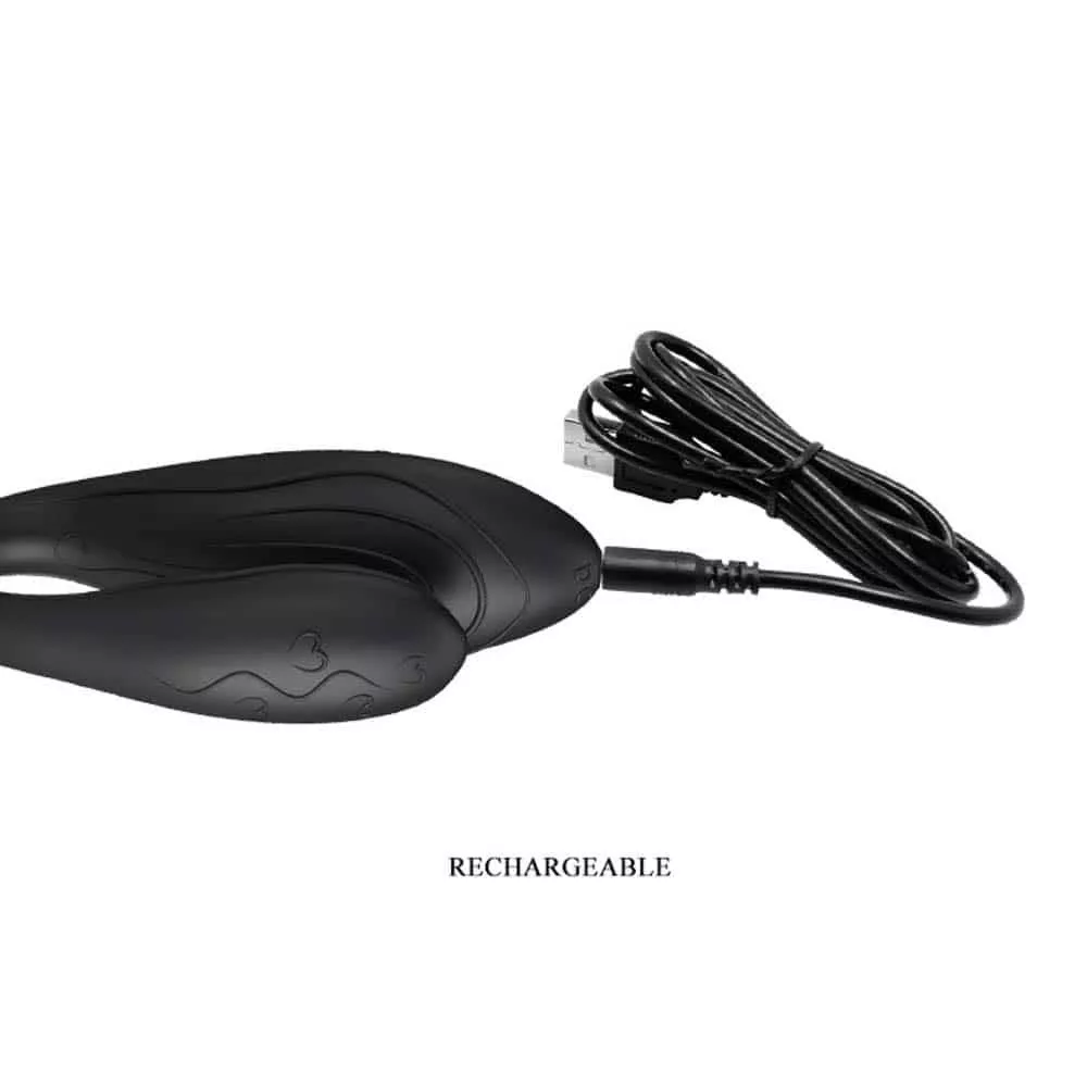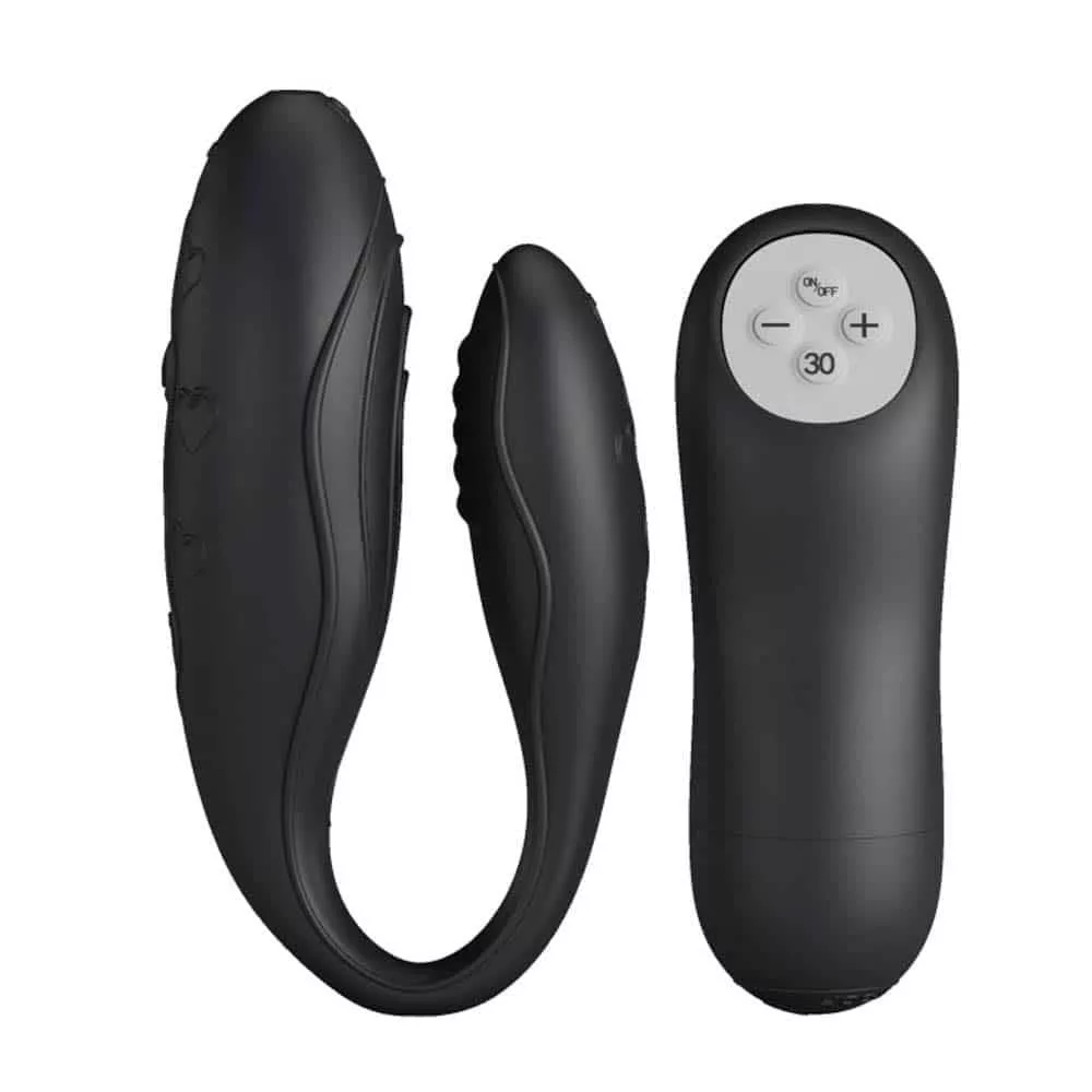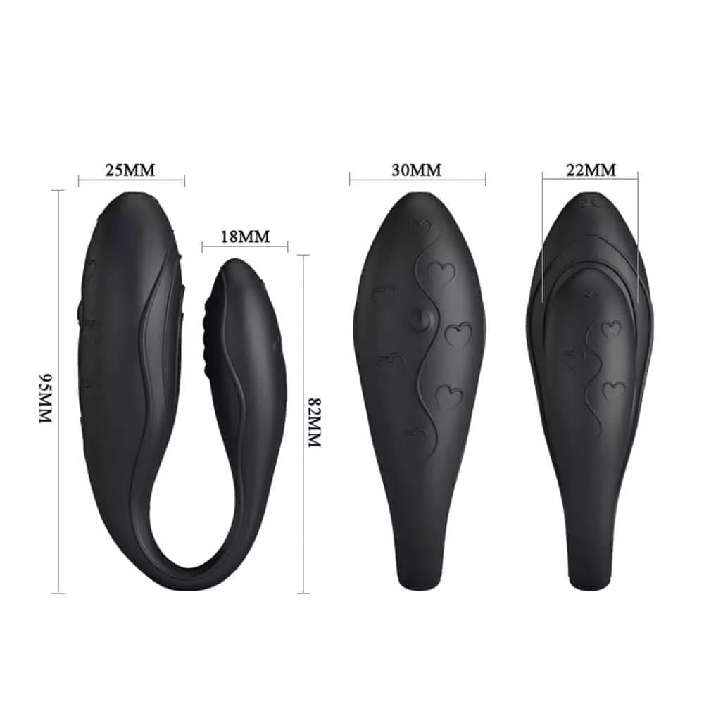 Vibratore realizzato in materiale flessibile e rispettoso della pelle, consigliato anche per coppie, può essere usato durante l'amore, con 30 funzioni vibrazionali e 3 livelli di velocità. Con l'aiuto del telecomando wireless, può essere controllato entro una distanza di 10 metri, ha due motori e può essere usato per stimolare insieme il punto G e il clitoride.