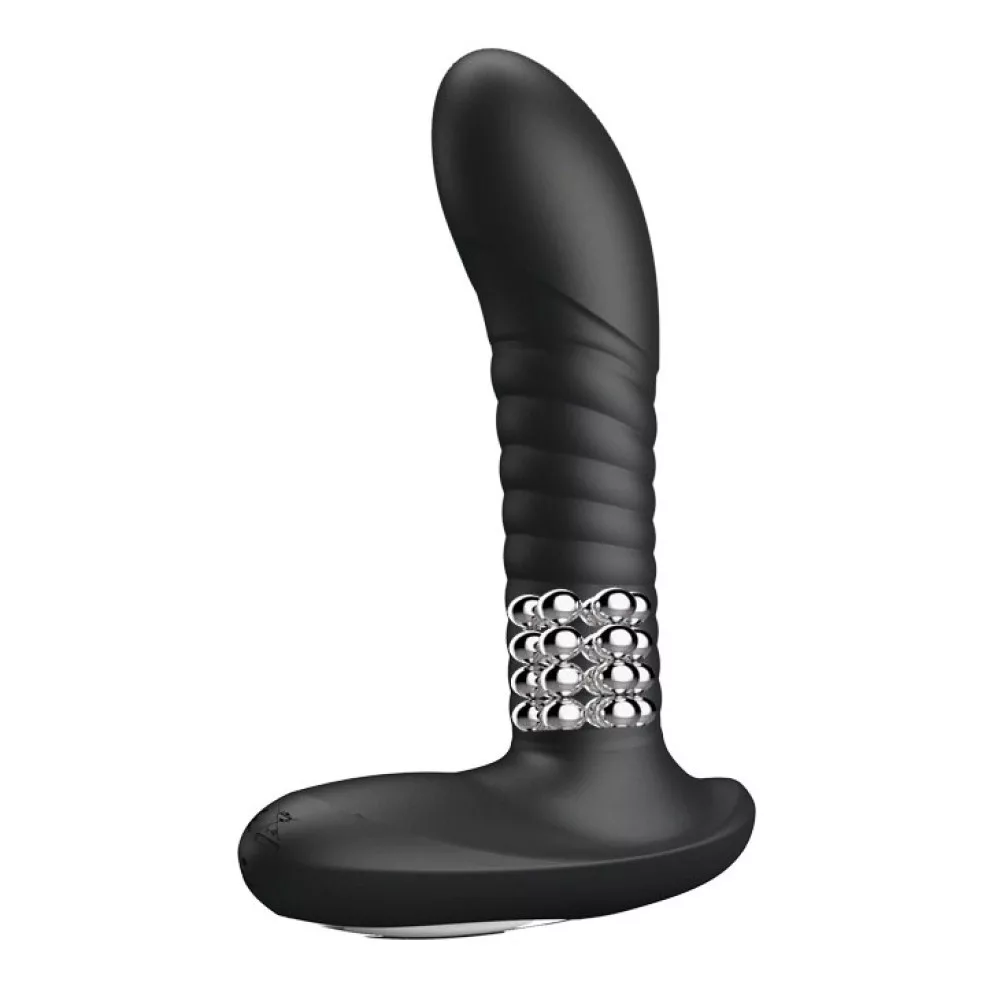Kiváló minőségű anyagból készített, anatómiailag tökéletesen formált, memória funkciós, vibrátoros prosztata és perineum masszírozó, ideális íves kialakítással, tizenkét vibrációs, három forgási funkcióval, kiszélesedő talppal a biztonságos behatolásért.
