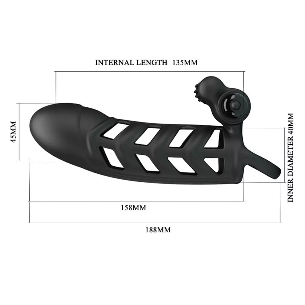 Una guaina peniene con uno stimolatore clitorideo che copre l'intero pene, può essere applicata in modo simile a un preservativo, ha 10 livelli di vibrazione ed è completata da uno stimolatore clitorideo. Il suo design esterno è entusiasmante per il partner.