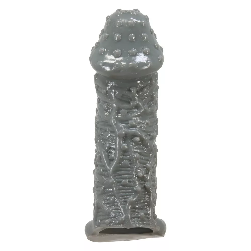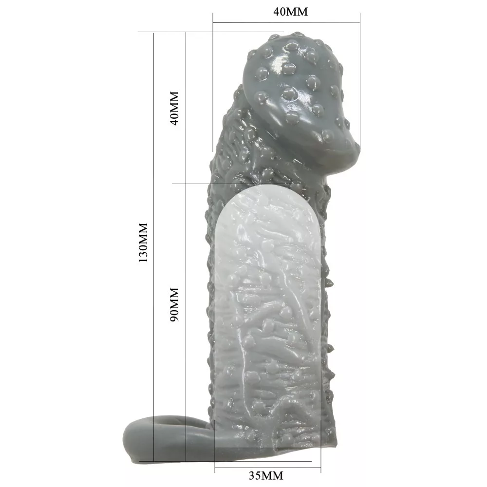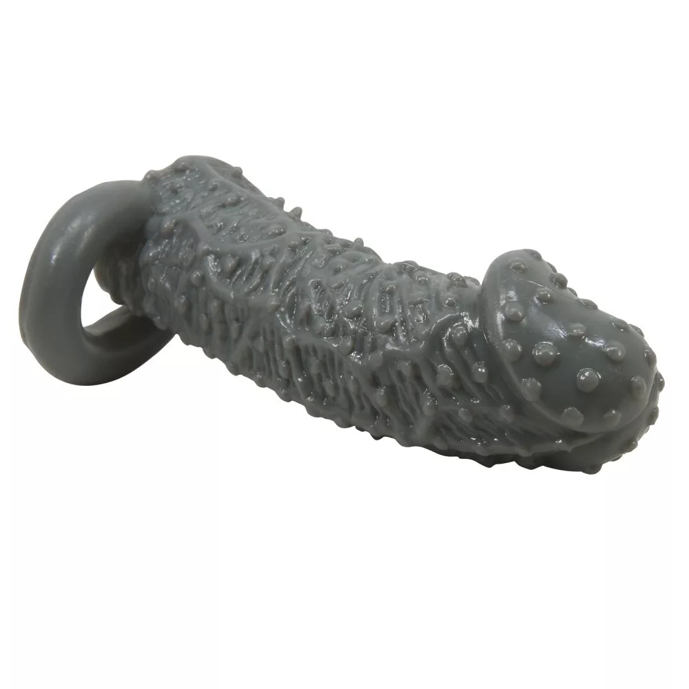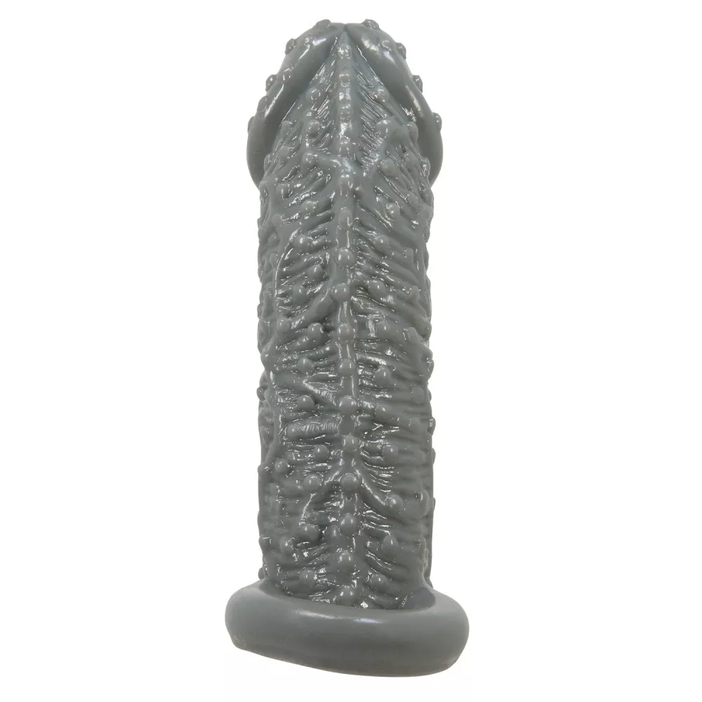 Pene o vibratore simile a un preservativo che copre l'intero pene o vibratore accessorio erotico con un anello testicolare che può essere posizionato in modo diverso. Design esterno del È emozionante per il partner. Lo spessore del materiale rende più facile percepire gli stimoli rendendo così possibile prolungare la durata dell'atto.