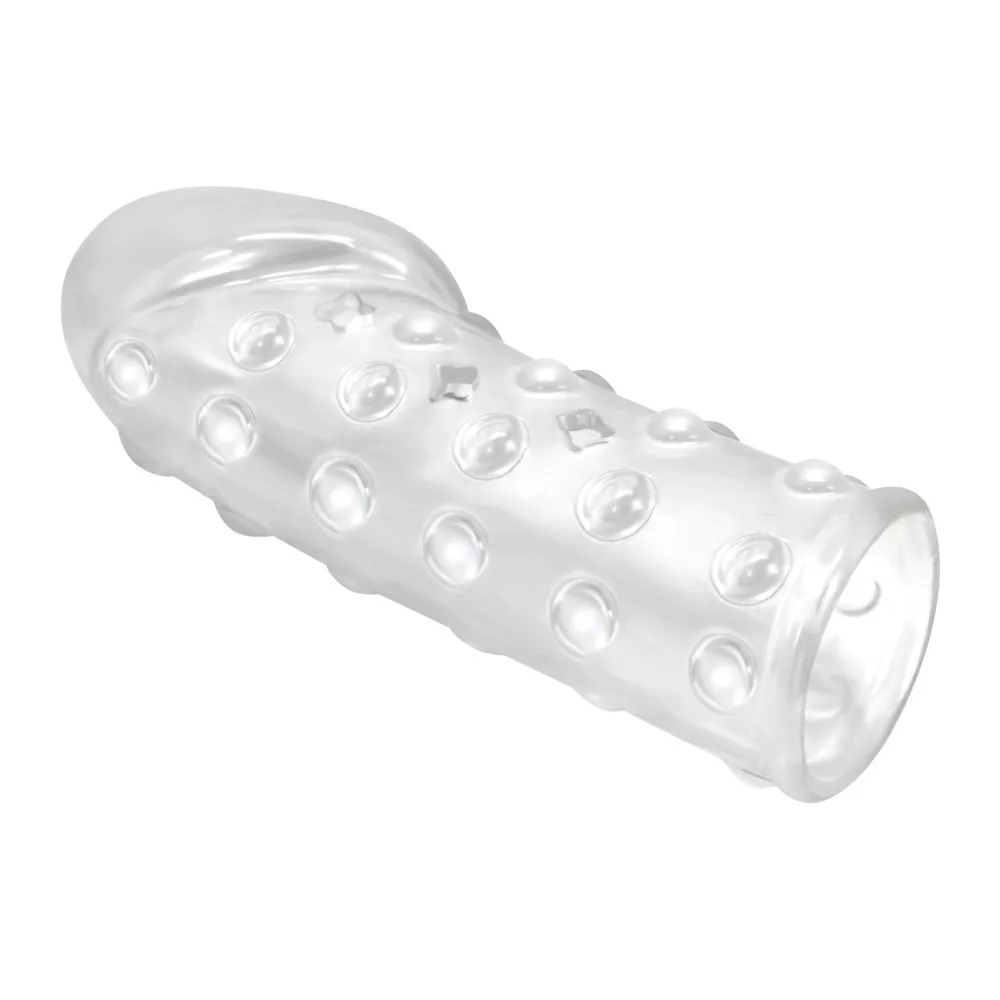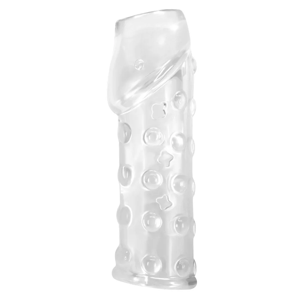 Pene o vibratore simile a un preservativo che copre l'intero pene o vibratore accessorio erotico che può essere collocato in modo diverso. Design esterno del È emozionante per il partner. Lo spessore del materiale rende più facile percepire gli stimoli rendendo così possibile prolungare la durata dell'atto.