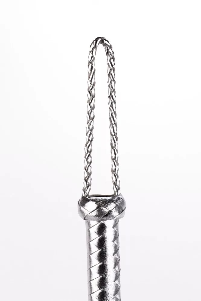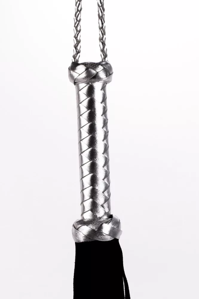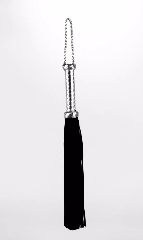 Flogger con manico in pelle metallica e code in pelle in suede nere 18"