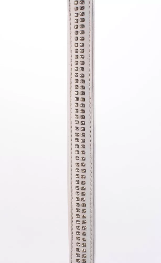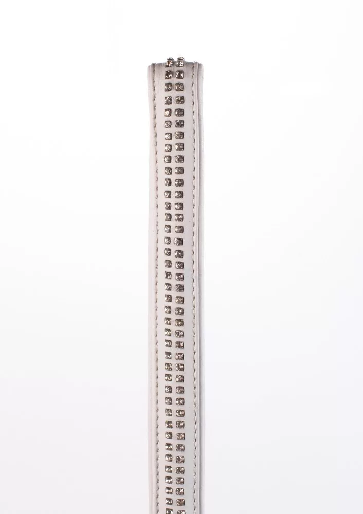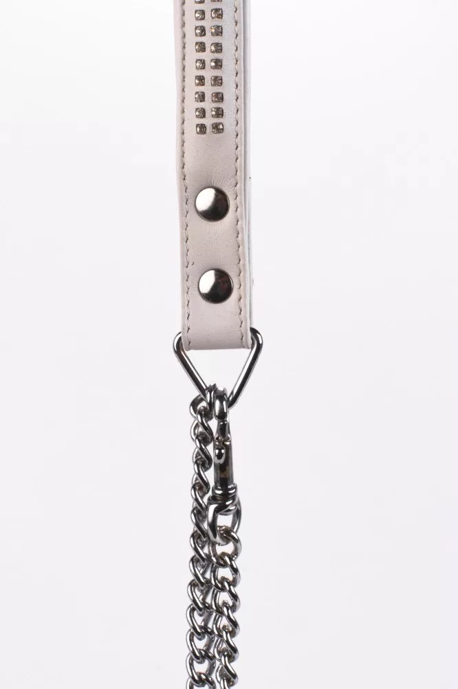 Manico in pelle d'agnello con 2 file di piccoli strass e catena metallica bianca