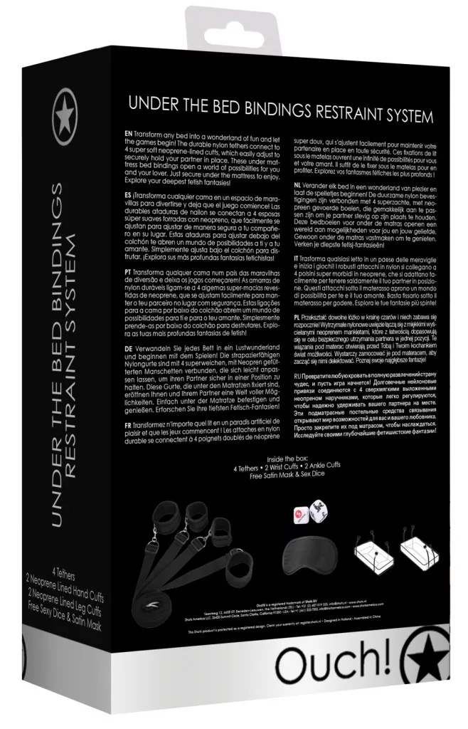 Fedezd fel az intimitás új dimenzióját az Under The Bed Binding Restraint Kit segítségével! Ez a prémium, elegáns fekete szett garantáltan feléleszti a vágyakat és a szenvedélyt. Engedd szabadjára fantáziád, és tapasztald meg a korlátlan élvezeteket. Hatásos, diszkrét és tökéletes kiegészítő a forró estéidhez!