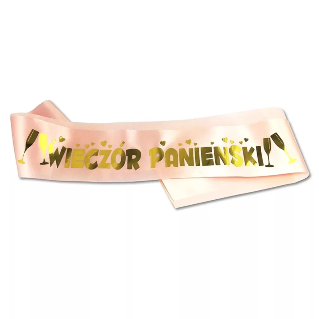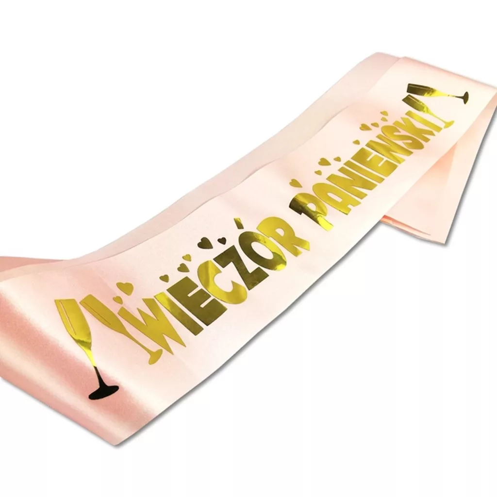 Készülj fel arra, hogy a jövendőbeli menyasszony ragyogjon egy igazán különleges kiegészítővel – ez a lenyűgöző, aranyszínű „Wieczór Panieński” feliratú szatén szarfa tökéletes választás a lánybúcsú hangulatának megkoronázására.