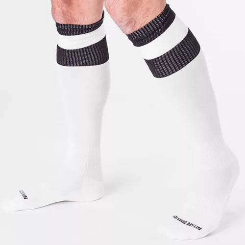 Fedezd fel a sportos elegancia érzését! Ezek a fehér zoknik fekete csíkokkal nemcsak divatosak, hanem a kényelem csúcsát is nyújtják. Könnyű, tartós anyaguk eloszlatja a lábak fáradtságát, miközben tökéletes díszítőelemei lehetnek a titkos vágyaknak. Elemek a stílusosan kényelmes élethez!