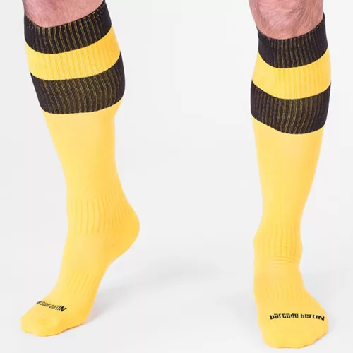 Fedezd fel a stílust sportosan! A Barcode Berlin élénk sárga-fekete zoknijai nemcsak szépek, de praktikusan ölelik körbe a vádlit, így minden lépésed kényelmes és divatos! Válaszd a minőséget, válaszd az élénk megjelenést!