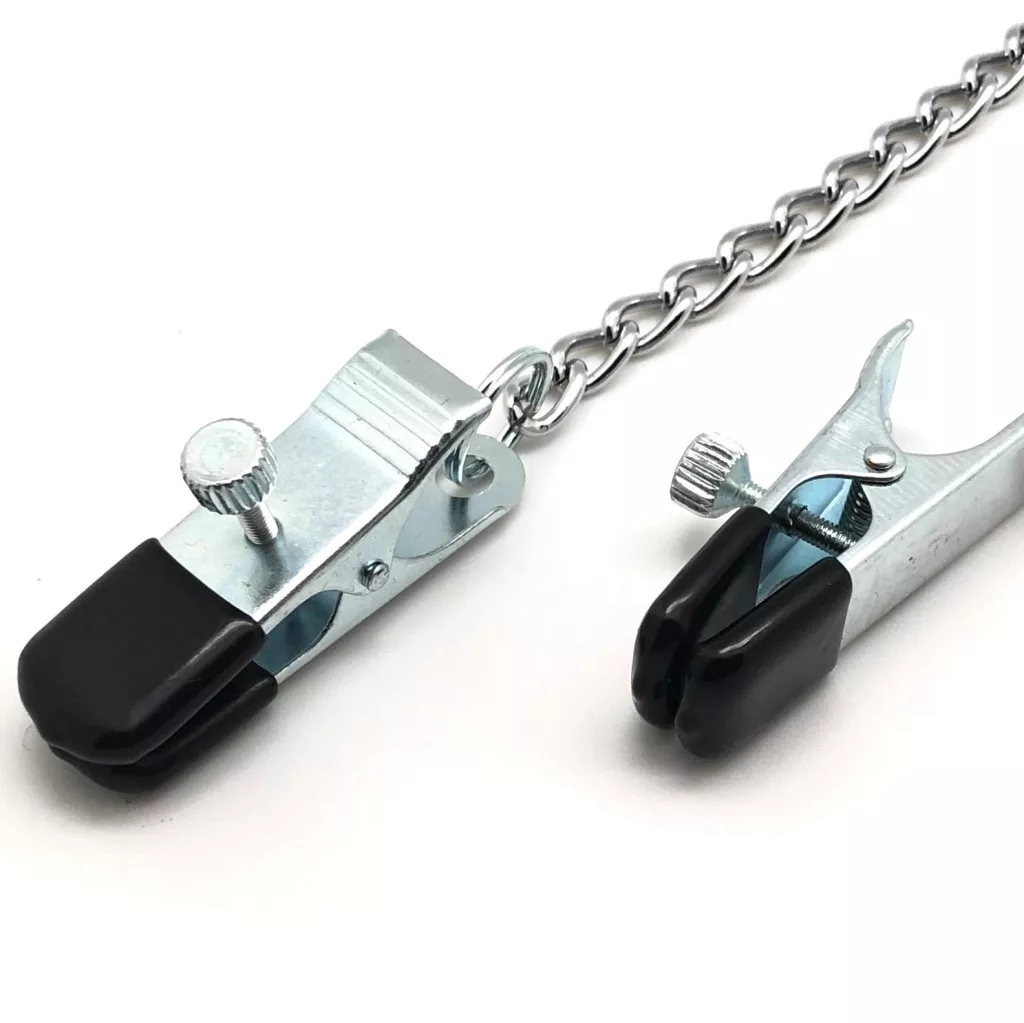 Fedezd fel a vágyak határait a prémium fém mellcsipeszünkkel! A 30 cm-es lánc és a 5,5 cm x 1 cm-es csipesz nemcsak lenyűgöző, de izgató élményeket is garantál. Merülj el az érzékiség tengerében, és hagyd, hogy a szenvedélyek vezessenek! Készült Európában, prémium minőségben, tökéletes választás mindazoknak, akik a különlegességet keresik.