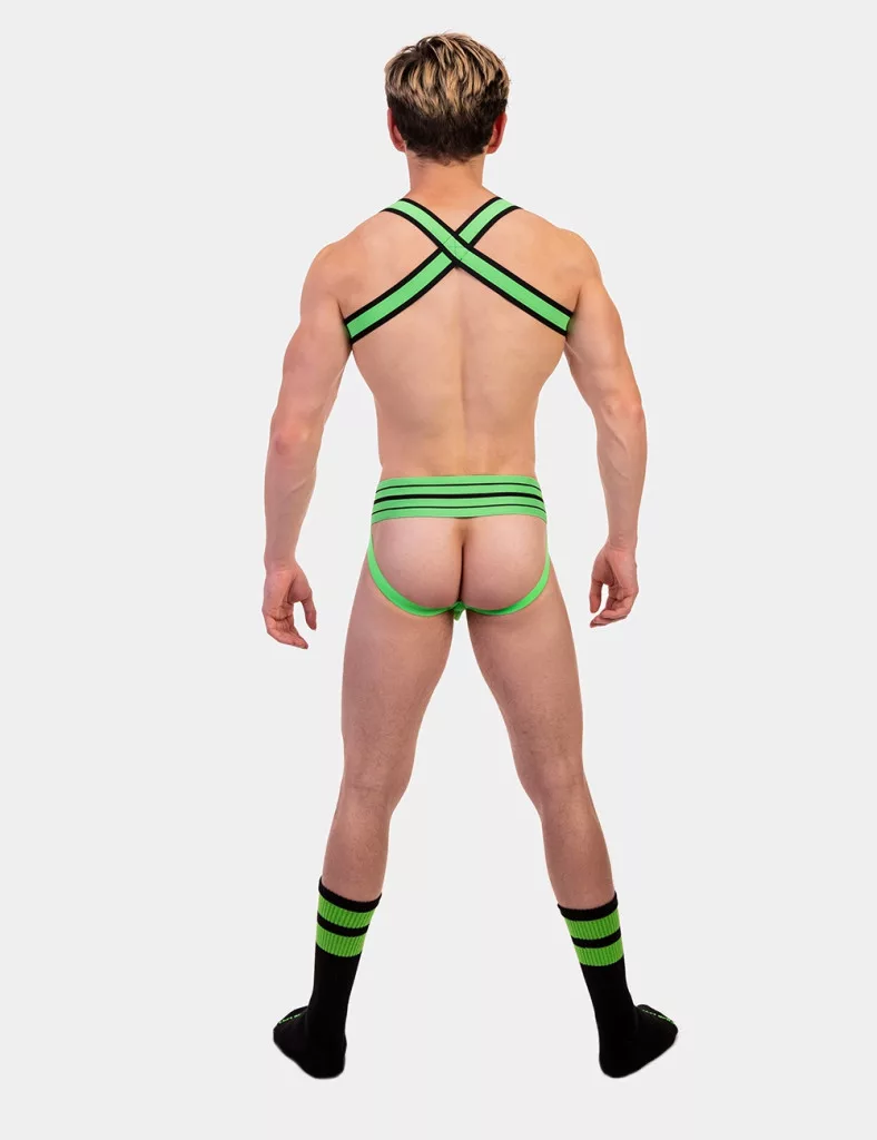 Fedezd fel a stílus és kényelem új dimenzióját a Barcode Berlin GYM SOCKS zoknival! A fekete alapszín és a vibráló fluoreszkáló zöld csíkok kombinációja garantáltan magára vonzza a tekinteteket, miközben a tartós, kényelmes anyag tökéletes társad lesz edzéseid során. Légy te a trend királya!