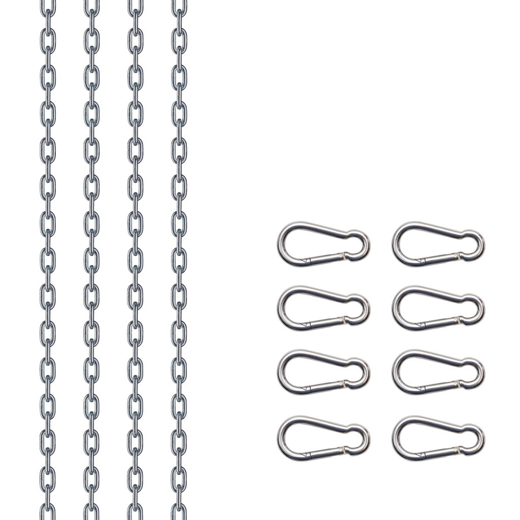 Fedezd fel az erő és stabilitás új dimenzióját! Az exkluzív 4 x 110 cm-es króm acél láncok és karabínerek hihetetlen, 120 kg teherbírással garantálják a maximális biztonságot. Ideális választás prémium minőségű slyngeket keresők számára!