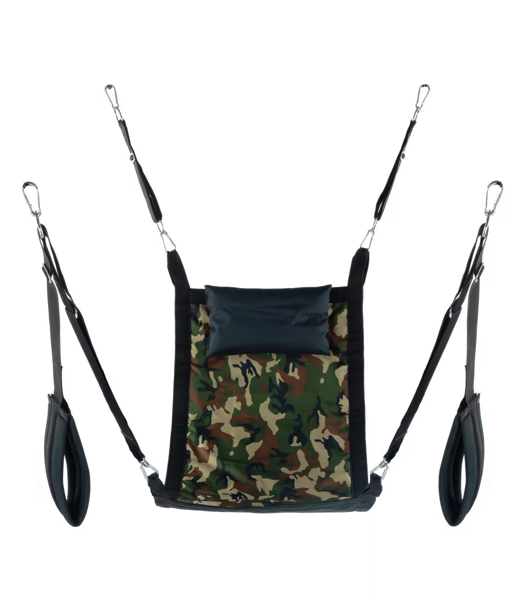 Fedezze fel a szabadságot és a kényelmet ezzel a stílusos, khaki színű, terepszínű hordszíjjal! Az egyedi rectangle forma és a prémium poliészter anyag garantálja a tartósságot és az eleganciát. A modern kiegészítők - 4 fém karabineres felfüggesztő, párnázott lábtartók és praktikus tárolótáska - mind a kényelmet szolgálják. Ideális választás kalandvágyó léleknek!
