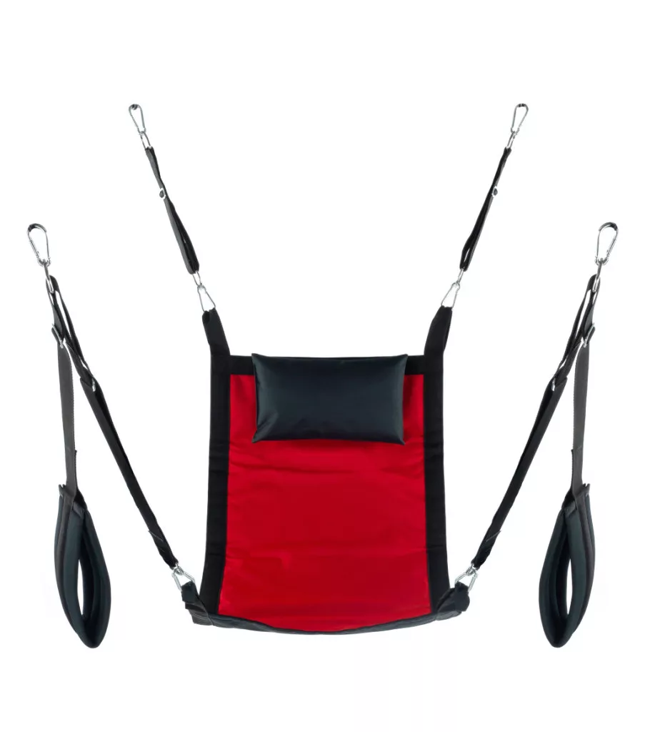 Fedezd fel a szenvedély új dimenzióját a piros szövet hinta segítségével! Ez a stílusos és ergonómikus sling több mint 60 cm széles és 107 cm hosszú, tökéletes választás, ha a kényelem és az izgalom találkozik. A minőségi poliészter anyag és a fém csat biztosítja a biztonságot, miközben a párnázott lábtámaszok és a 23x38 cm-es párna gondoskodik a maximális élményről. Ideális intim pillanatokhoz! Praktikus tárolótáskával együtt, hogy bárhova magaddal vihesd. Éld át a kényelmet és a szenvedélyt, amit megérdemelsz!