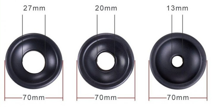 Fokozd az élményt prémium péniszpumpád segítségével! Ezek a rugalmas mandzsetták három különböző nyílással (13mm, 20mm, 27mm) lehetővé teszik a feszítés intenzitásának változtatását, így minden alkalommal új izgalmakat tapasztalhatsz. Tökéletesen illeszkednek 60mm-es átmérőjű hengerekhez, és a TPR anyag garantálja a kényelmet és tartósságot. Ne hagyd ki ezt az érzéki kalandot!