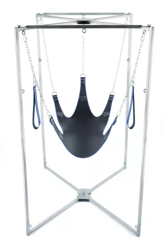 Prémium 5 pontos bőr heveder készlet – fekete-kék keret