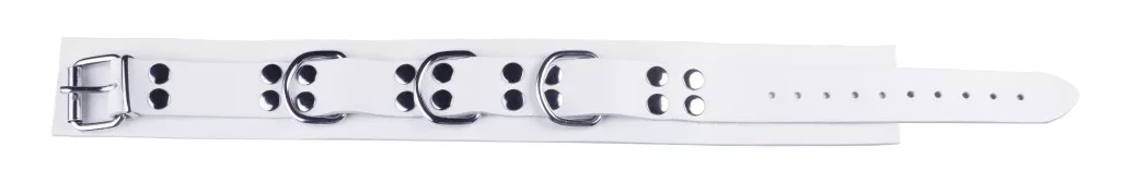 Fedezd fel a szenvedély határait ezzel a lenyűgöző, ultra fehér bőrnyakkendővel! Elegáns 5,5 cm széles kialakítása és prémium, valódi tehénbőre tökéletes választás az ínycsiklandó megjelenéshez. Fém zárak és szegecek garantálják a tartósságot. Az állítható nyakméret (38-52 cm) pedig kényelmes viseletet biztosít minden alkalomra. Emeld ki stílusod, és lépj be az elegancia világába!