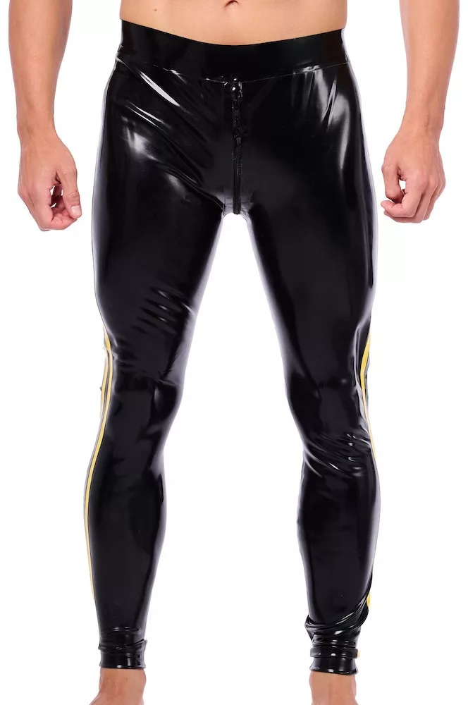 Merülj el a szenvedély és izgalom világában a fekete latex nadrággal, amelynek csábító sárga csíkjai garantáltan feldobják a megjelenésed! A 0,6 mm vastagság és a teljes zip dizájn nemcsak tökéletesen illeszkedik, de a divatos extravaganciát is megtestesíti. Rázd fel az estéidet és hagyd, hogy a figyelem középpontjába kerülj!