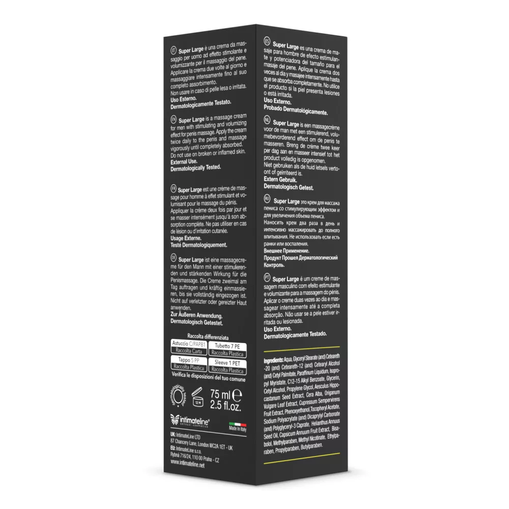 Egy forradalmi hatóanyagokat tartalmazó masszázskrém, amely extrém feszesítő tulajdonságokkal rendelkezik. A péniszre rendszeresen alkalmazva növelheti a térfogatot és a tömörséget. Ez a teljesen természetes termék fokozza az ujjak hatását masszázs közben a pénisz újraformálását elősegítő aktív bőrfeszesítő összetevőkkel. Verhetetlen megjelenést biztosít, és segít elérni a tökéletes méretet idővel.