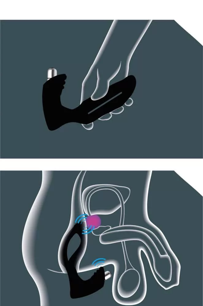 Massaggiatore ergonomico realizzato in silicone di grado medico con 5 funzioni vibratorie per stimolare insieme il punto p e il perineo.