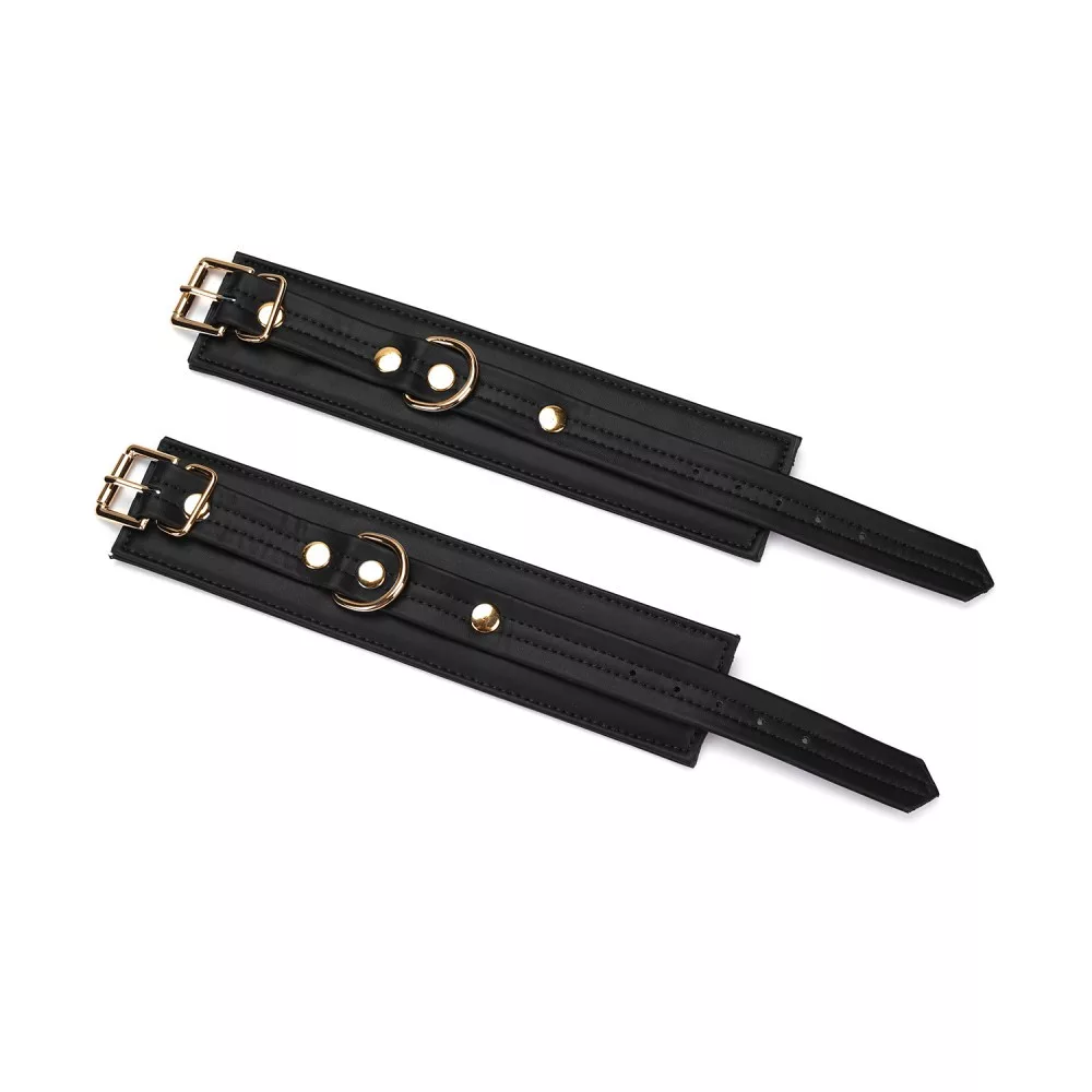 A vegán műbőrből készült bilincs segítségével egyszerű és erotikus a korlátozó játék felfedezése. A szerepjáték-forgatókönyvek széles skálájához alkalmas, tartós, mégis kényelmes műbőr bilincsek ezüstszínű csattal és szemet gyönyörködtető szegecsekkel lettek ellátva, és finom párnázottsággal alakították ki a kényelmes használtra.