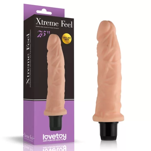 Materiale realistico a forma di pene, flessibile, simile alla pelle, con vibrazioni regolabili e superficie vedata.
