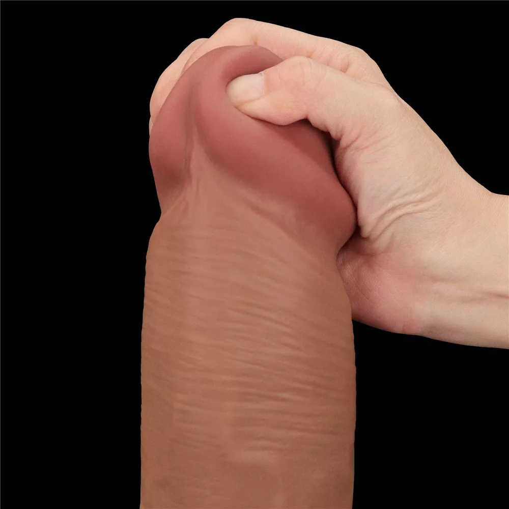 A forma di pene con uno strato esterno morbido e un nucleo interno duro realizzata con un materiale simile alla pelle simile al tessuto corporeo, una piegabile senza superficie vedata, completa di testicoli. Con l'aiuto della ventosa, può essere fissata a una superficie piana, che può essere utilizzata per svitabile.