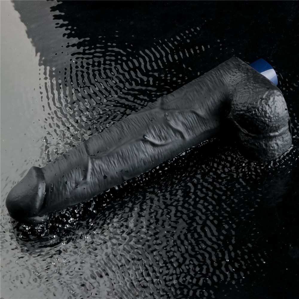 Dildo vibrante ricaricabile da 10,5" REAL SOFTEE (Nero)_B15O50_4