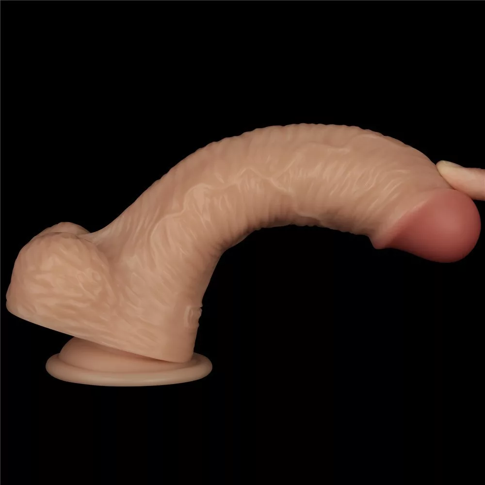 Kiváló minőségű anyagból készített, realisztikus kialakítású, puha, rugalmas, erezett felületű, 10 rezgési fokozattal rendelkező dildó, állítható tépőzárral és rugalmas hevederekkel rendelkező hámmal. A dildó felcsatolás nélkül is használható, tapadókorongja segítségével sík felületen rögzíthető. A hám 87 cm derékbőségig állítható.