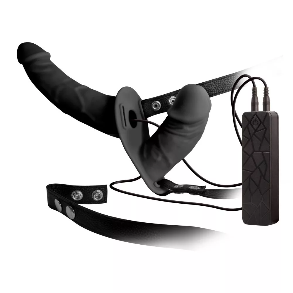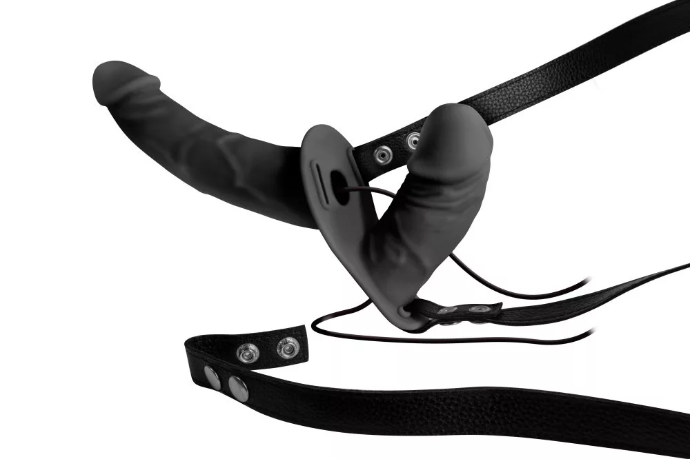 Realisticamente progettato, dotato di clip, con superficie rigata, una coppia di dildo progettata anche per la stimolazione del punto G, che permette una stimolazione vaginale simultanea per entrambe le parti. Controllabile con telecomando cablato, dispone di 10 funzioni di vibrazione. L'imbrago è elastico, utilizzabile per circonferenze vita tra 81 e 112 cm.