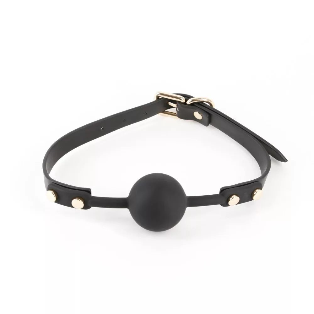 Egészségre nem ártalmas, kiváló minőségű anyagból készített, klasszikus kialakítású szájpöcök, állítható műbőrpánttal.