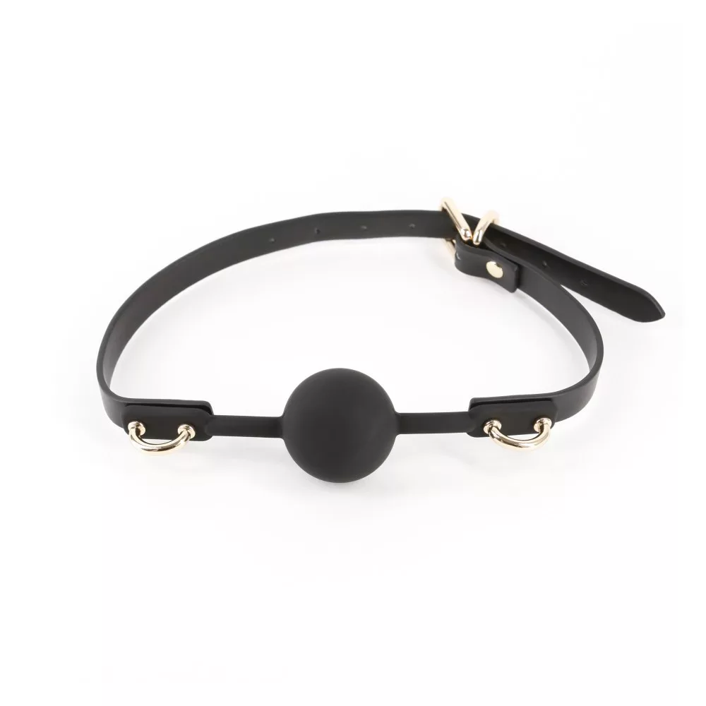 Egészségre nem ártalmas, kiváló minőségű anyagból készített, klasszikus kialakítású szájpöcök, állítható műbőrpánttal.