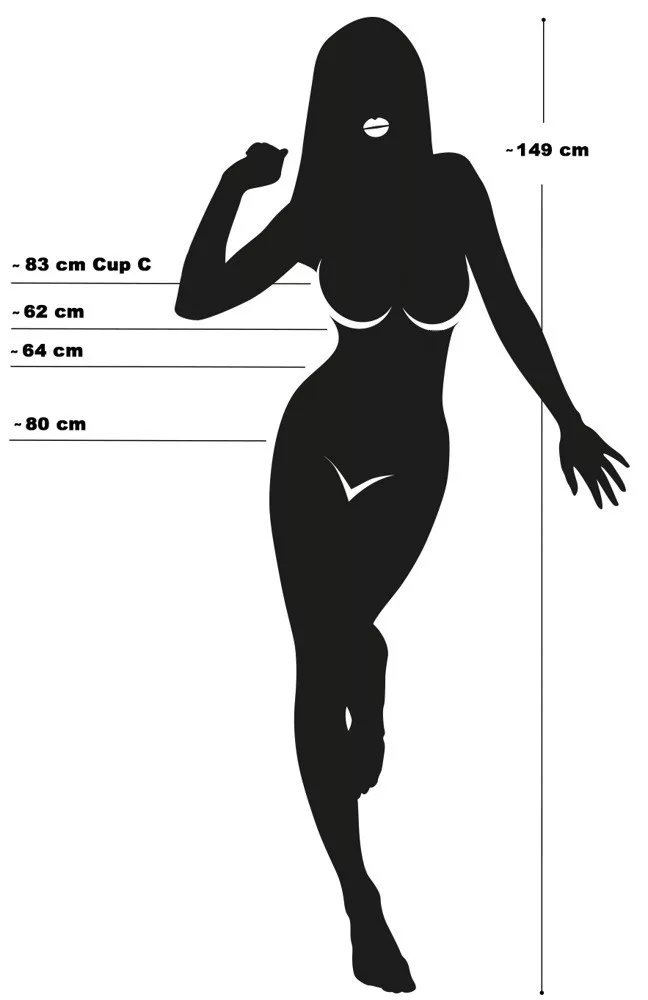 Női szerelembaba, mely intim együttlétek, legénybúcsúk kiegészítője lehet. Magassága, testmérete átlagos, arca fotó jellegű.