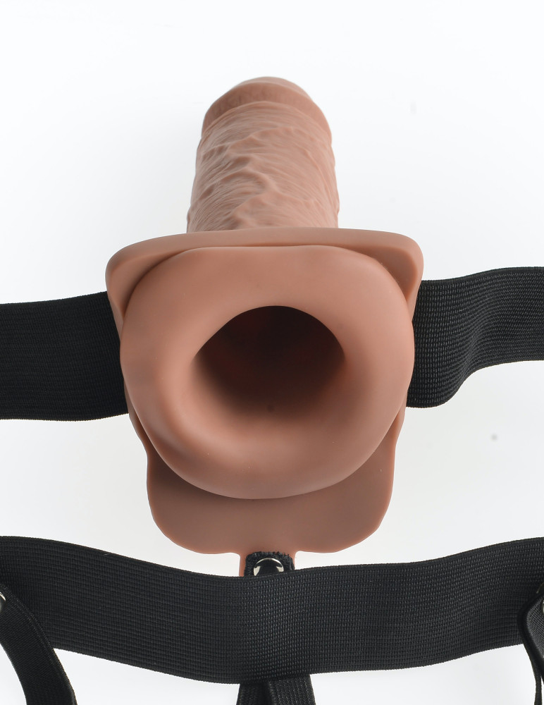 Bőrbarát anyagból készített, 10 rezgési funkcióval rendelkező, férfiak számára készített, felvehető, pénisz alakú, erezett felületű, herékkel kiegészített, vibrációs motorral ellátott, távirányítóval is szabályozható erotikus kiegészítő,  rugalmas szíjjal és pántokkal. A vibráció segítségével az élmény jelentősen fokozható. Az öv 71 és 132 cm derékbőségek között állítható.