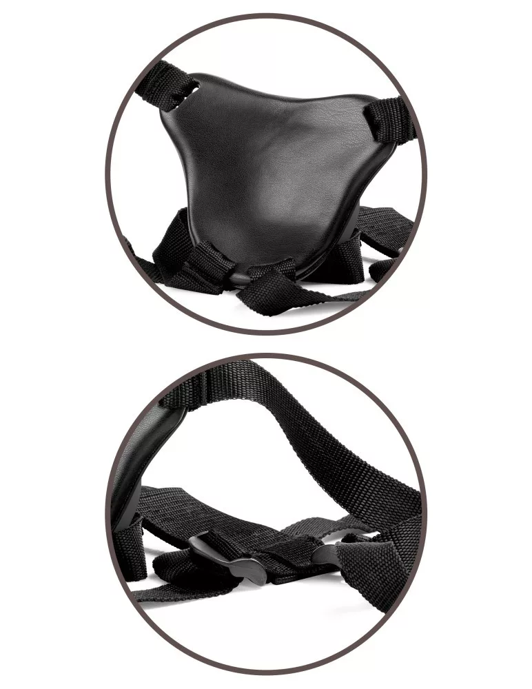 La base di un sistema di fissaggio semplice è anatomicamente piastra corporea curva con ventosa su cui si trova la ventosa del chiusa a chiave salda. La ventosa mantiene la pressione nella posizione perfetta (Push & Play). La piastra del corpo distribuisce la pressione in modo uniforme al area del bacino, riducendo i punti di pressione. Cinghie larghe e stabili in plastica Regolabile con fibbie per una calzata sicura ma confortevole. Il corpo Altri vibratori e le ventose possono essere collegati alla dock. La cinghia può essere regolata da 61 cm a 137 cm di circonferenza vita.