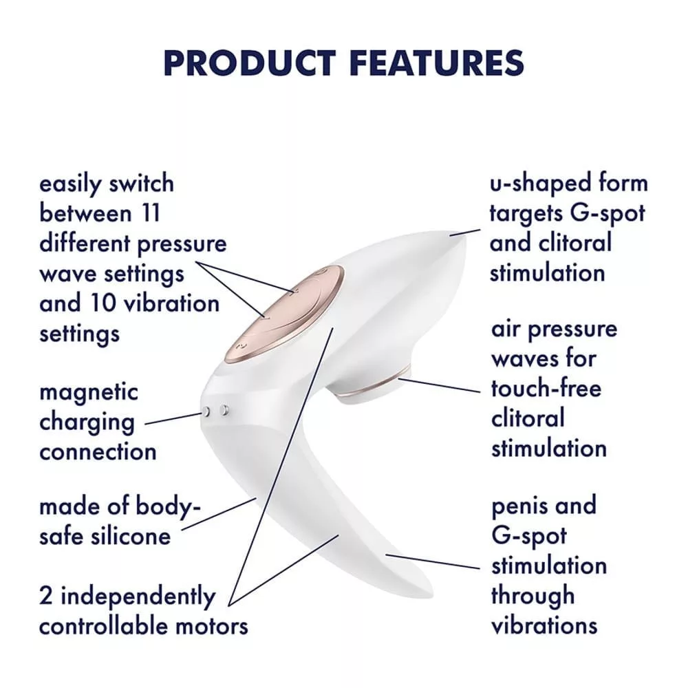 Prémium kategóriájú, pároknak is ajánlott, szeretkezés közben is használható, léghullámos és vibrációs működésre is kialakított, LED-es világítású izgató. 11 léghullámos és 10 rezgési funkcióval rendelkezik, a stimulációs módok egymástól függetlenül is használhatóak, a csikló, a g-pont és a pénisz egyidejű kényesztetéséhez.