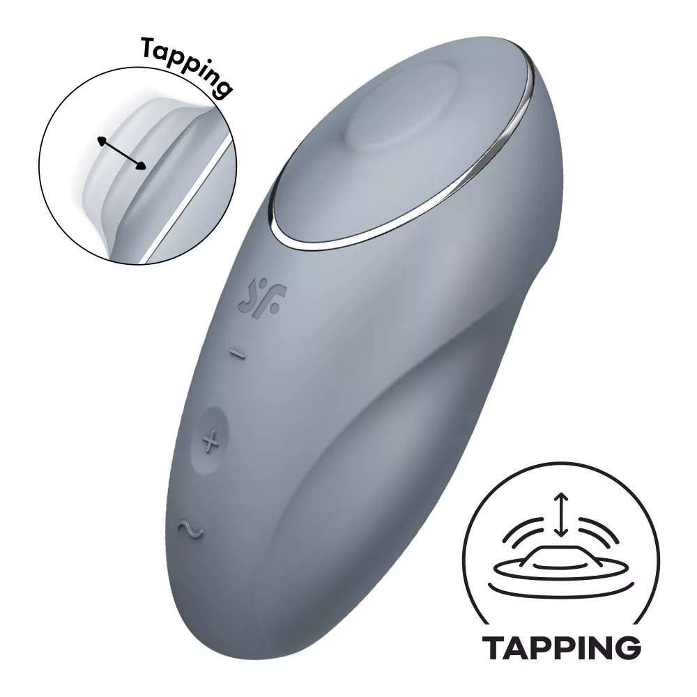 A kiváló minőségű, bőrbarát anyagból készített, két motorral felszerelt Satisfyer Tap & Climax 1 mindent tartalmaz, amit Ön egy izgatótól elvár: elegáns dizájn, kompakt méret és természetesen intenzív rezgések, amelyeket az előlapon található gombokkal könnyedén irányíthat. Válasszon 11 vibrációs program közül a gyengédtől az intenzívig. Ez a Satisfyer eszköz azonban még többet kínál annak érdekében, hogy a csikló stimulációt a következő szintre emelje! A 11 további koppintó programmal a Satisfyer Tap & Climax 1 gyengéden – vagy néha kicsit erőteljesebben – koppint a csiklójára, és teljesen új típusú izgalmakat kínál.